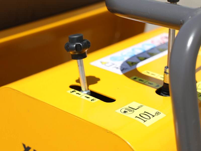 Ce mini dumper 500 kg est équipé d’un moteur Briggs & Stratton de 10 chevaux, offrant une puissance idéale pour les travaux sur chantiers réduits. Avec son seau auto-charge, il peut transporter jusqu’à 500 kg, facilitant ainsi le travail dans des espaces étroits. Son moteur est associé à une capacité de réservoir de 5.3L et une huile moteur de 1.1L pour une performance optimale. La vitesse de travail est réglable entre 1.7 et 3.5 km/h, avec une capacité de pente de 20°. Son poids total est de 520 kg, et il est conçu pour une utilisation facile avec une largeur de 520 mm et un rayon de braquage minimal de 0.95 m.
