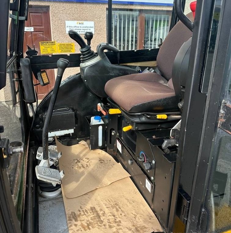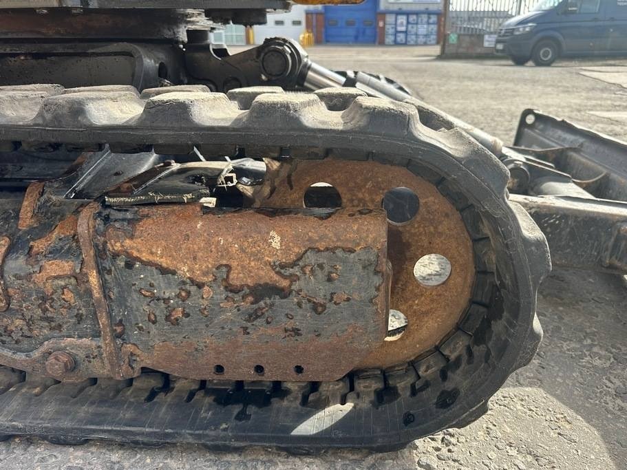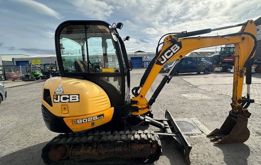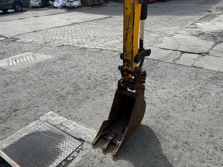 Cette mini pelle JCB 8026 CTS de 2012 est une machine compacte conçue pour les travaux de terrassement précis. Elle cumule 3 150 heures d’utilisation et fonctionne au diesel. Son équipement comprend un coupleur mécanique JCB d’origine, un bras réglable hydrauliquement, un godet câble et un godet de fouille. Des interventions récentes incluent le remplacement de la courroie de ventilateur, de l’alternateur et de l’essuie-glace avant. L’ensemble est en bon état de fonctionnement. Le train de roulement affiche une usure estimée à 30 %. Cette machine de fabrication britannique se distingue par sa robustesse et sa fiabilité.