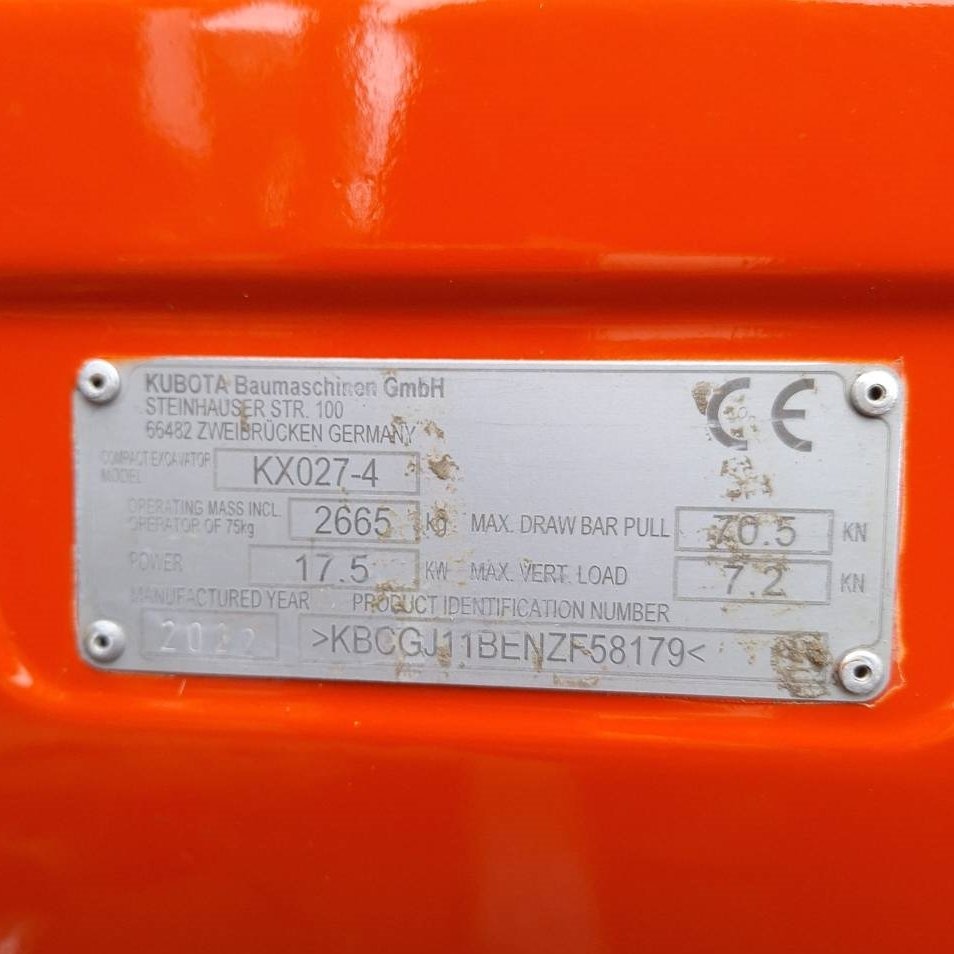 Mini pelle Kubota KX 027 2022 – Compacte, équipée et performante